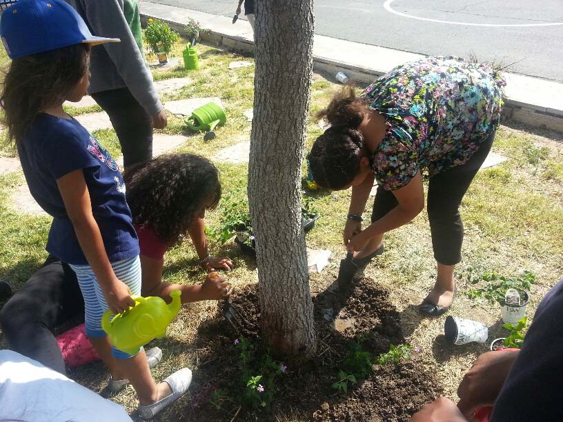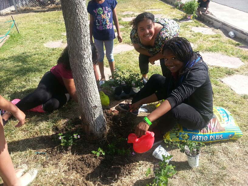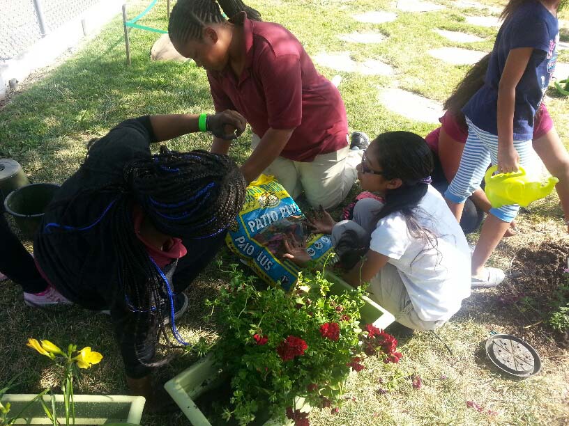 Students from Antioch Middle School on their community service outreach.